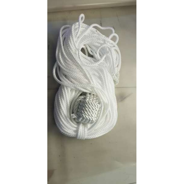 Бросательный конец, или выброска, представляет собой важное судовое оборудование, предназначенное для безопасной подачи швартовочных тросов на соседние суда, берега или причалы. Это простое, но крайне важное средство обеспечивает безопасное начало швартовки и буксировки, особенно в условиях ограниченной манёвренности судна. Благодаря своей конструкции, бросательный конец позволяет быстро и эффективно осуществлять маневры, что особенно важно в условиях портовой деятельности и при проведении аварийно-спасательных операций. Он изготовлен из прочной полиамидной нити, что обеспечивает его долговечность и устойчивость к различным внешним воздействиям.Подробнее