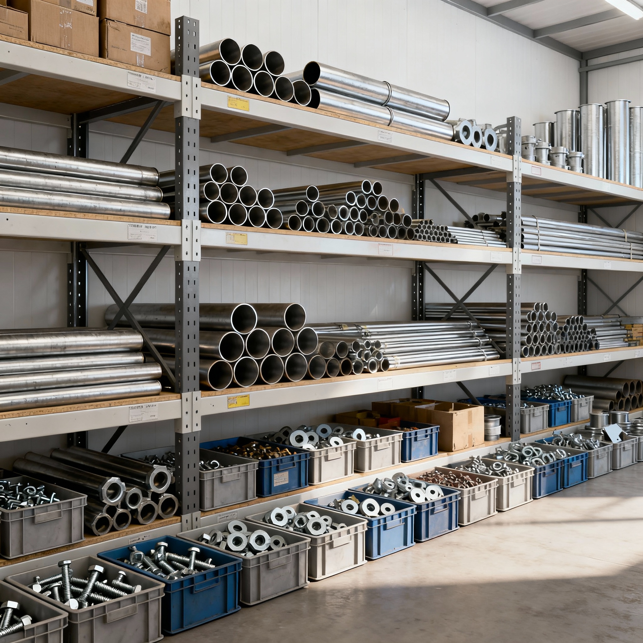 Круглая, профильная, ЭСВ/бесшовная, с обязательной маркировкой плавки. Запчасти: фланцы, метизы, подшипники, ремни, редукторы. Здесь много мелких мест — нужен точный учёт и герметичная тара.